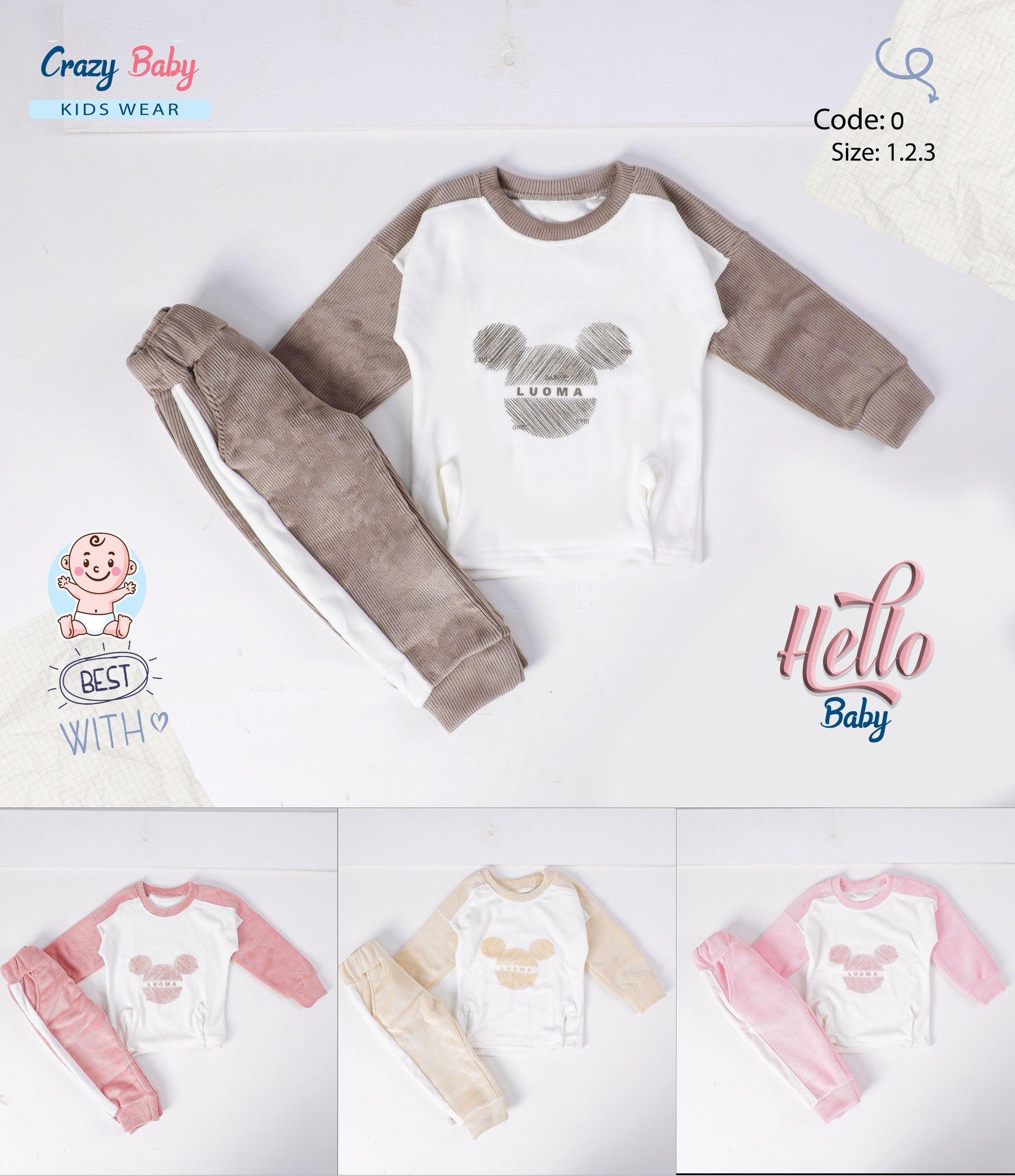 طقم شتوي من قطيفـة مستوردة ناعمة على البشرة، مكوّن من سويت شيرت + بنطلون بنفس الخامة الفاخرة.
