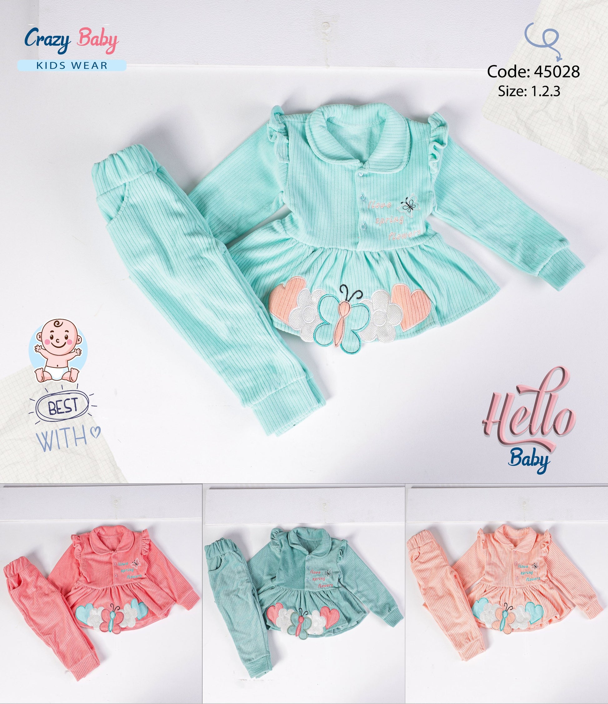 طقم شتوي بناتي مكوّن من سويت شيرت + بنطلون، مصمم من قطيفة مسحب ناعمة لطيفة على بشرة الأطفال ومثالية لأيام الشتاء الباردة.